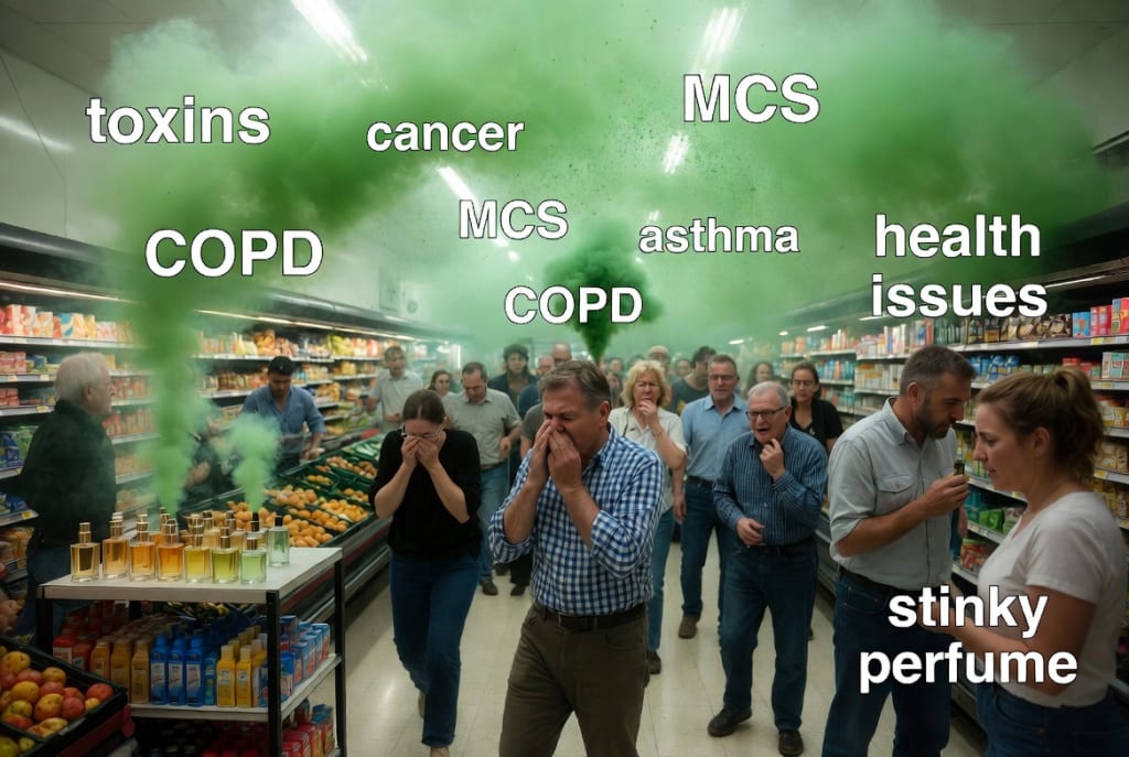 For people with Multiple Chemical Sensitivities, the grocery store fragrance problem is not an inconvenience. It is a barrier to basic functioning. MCS community members report having to abandon full shopping carts, return entire grocery orders that arrived smelling of synthetic fragrance, shop only during early morning hours when exposure may be lower, wear respirator masks to enter stores, or stop shopping in person entirely and pay delivery fees they cannot afford as the only safe alternative.