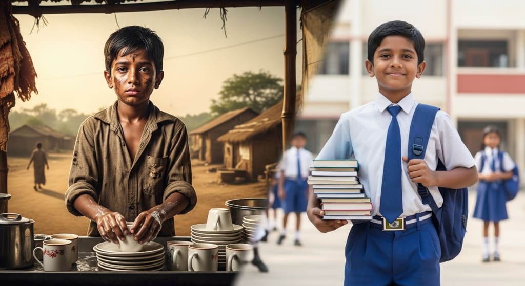 The very next morning, he stepped into a life far harsher than his years. He began working at a roadside tea stall in a nearby town. His small hands, meant to hold a pen, now washed greasy dishes in cold water. His fingers cracked, his skin turned rough, and his back ached—but he never complained.