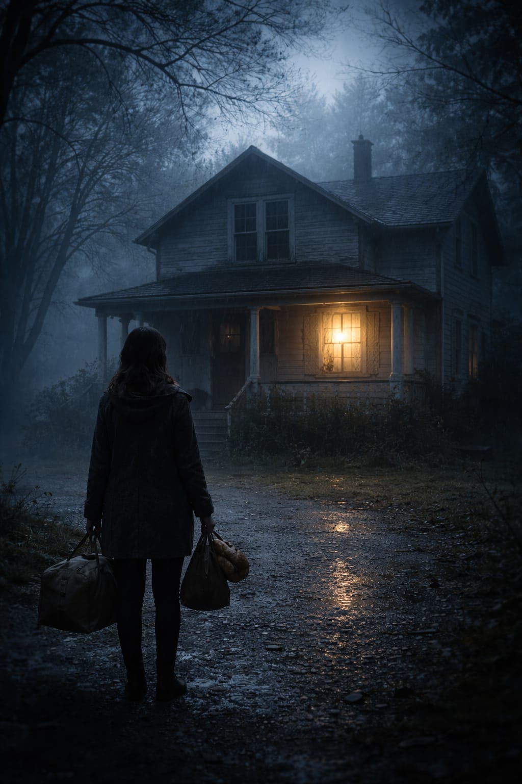 She opened the door before she could invent a third. Gravel shifted under her shoes. The air smelled of wet cedar and mud and something faintly medicinal drifting from the house.