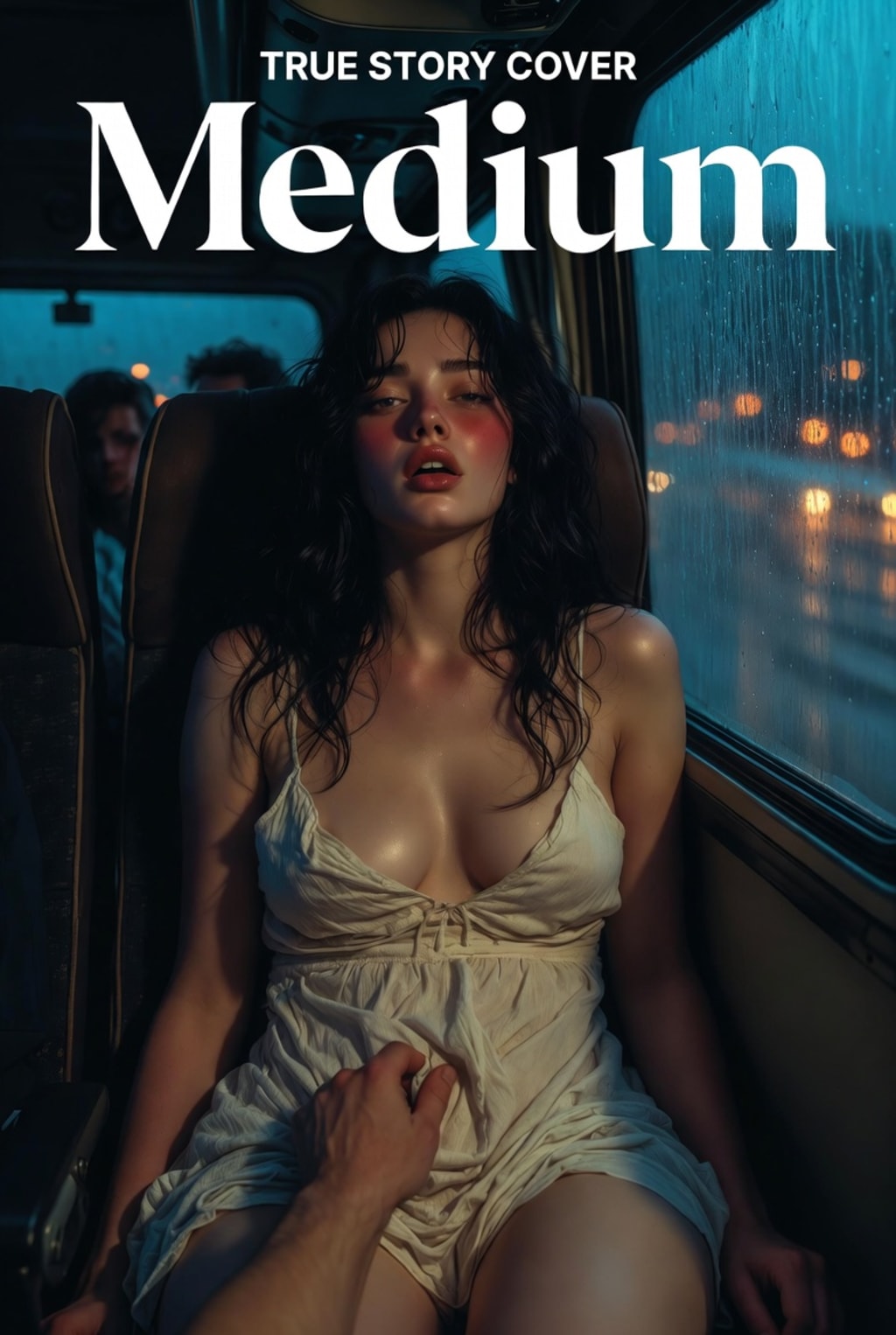 I almost moaned out loud. The bus was dark, the engine loud, but still. I gripped the armrest, eyes fluttering shut. He circled harder, feeling how drenched I was. My hips started rocking against his hand on their own. He slipped one finger under the edge of my panties, right into my slick folds. The sound was obscene—wet, filthy, barely covered by the road noise. He pushed inside me, slow, deep, curling just right. I was so tight and so ready that I came in under a minute, biting the neck of my dress to stay quiet, legs shaking against his thigh. He didn’t stop. He kept fingering me through it, two fingers now, stretching me, thumb on my clit, drawing it out until I was panting.