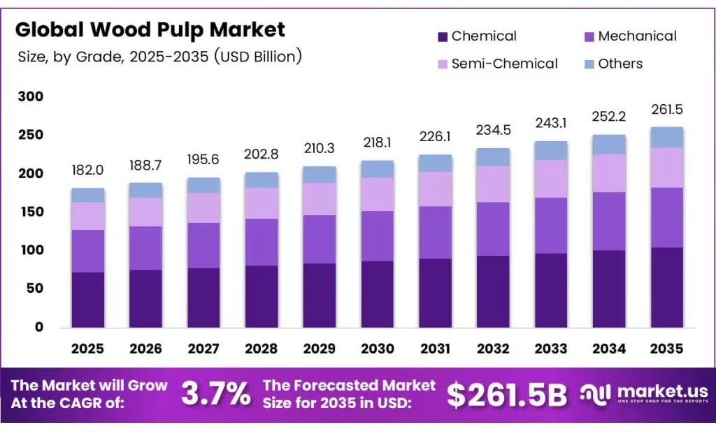 Wood Pulp Market To Reach USD 261.5 Billion by 2035 at 3.7% CAGR