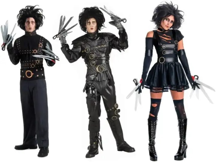 Men get a costume very similar to what is found in the movie. The scissor hands are not as detailed or sharp for practicality, and the clothing is not always high-quality leather to keep down the price, but it is close enough.