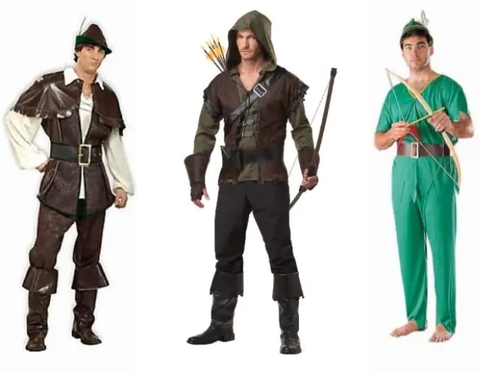Men have their choice of clothing options that might assist them in fulfilling the role of living in the lush green forest as Robin and his Merry Men steal from the rich and give to the poor. Some costumes incorporate thick leather to enhance the tough warrior appearance. Other costumes embrace the more cartoonish style of an archer wearing bright green clothing and a feather in his hat.