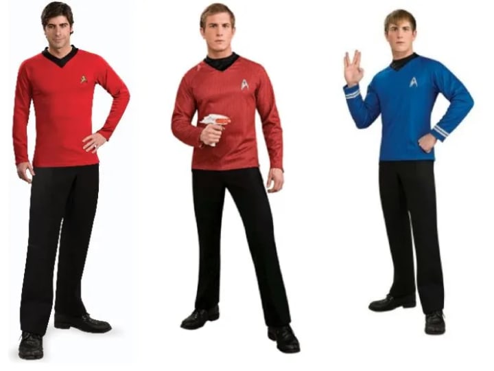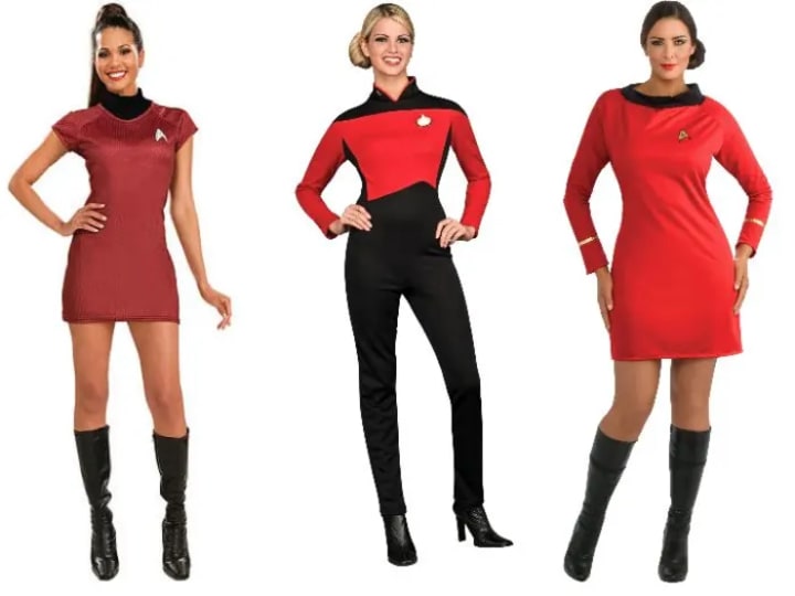 Future incarnations of the show would prove just that. Not only would larger numbers of women be added to the crew, but they would also hold positions of power. Perhaps that is why Star Trek costumes are some of the most equal between the different genders. The men may have had a little more fabric with their costumes, but they are just as tight. Women have a better variety of choices than men. A man’s biggest decision comes in what color he wants to wear. Women can choose between colors and designs. The costumes that do come in skirts are at a decent length and are not cut unusually low.