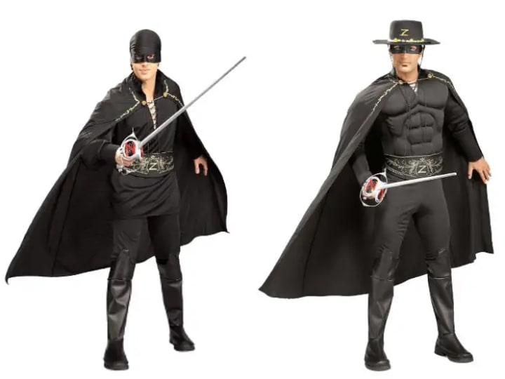 There have been many interpretations of Zorro since his creation in 1919, but men’s Halloween costumes look a lot like you would expect. The black pants, boots, shirt, cape, and mask are relatively basic. The biggest variety comes in the choice between a hat or bandana. There are also some costumes that come with artificial muscles if the wearer is not in good enough shape to truly embody the character.