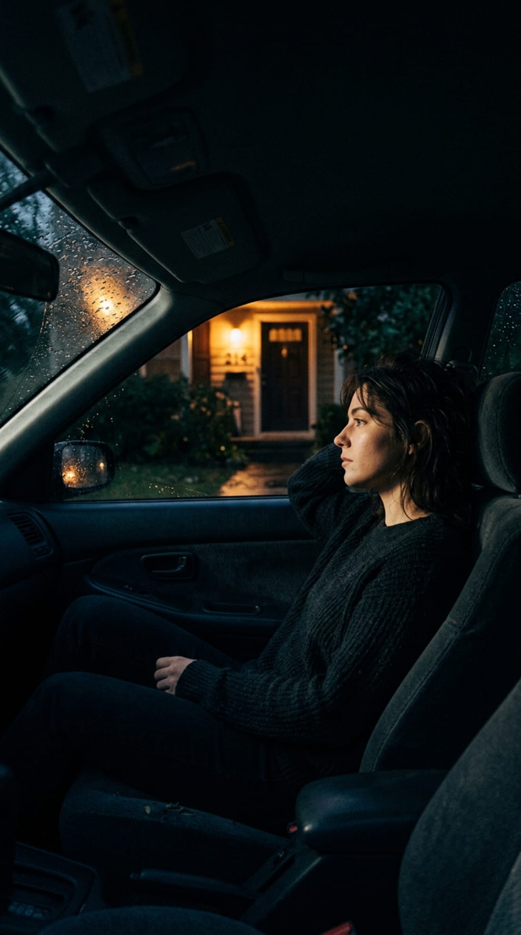 The engine’s been off for twenty minutes, but the driveway is louder than the highway was. You’re sitting in the dark, hands still locked on the steering wheel, staring at the flicker of the porch light through a rain-streaked windshield. In the cupholder, a coffee from 9:00 AM sits cold and forgotten, a bitter reminder of a day that started with too much caffeine and not enough peace. You’ve been home for nearly half an hour, but you can’t bring yourself to open the car door.