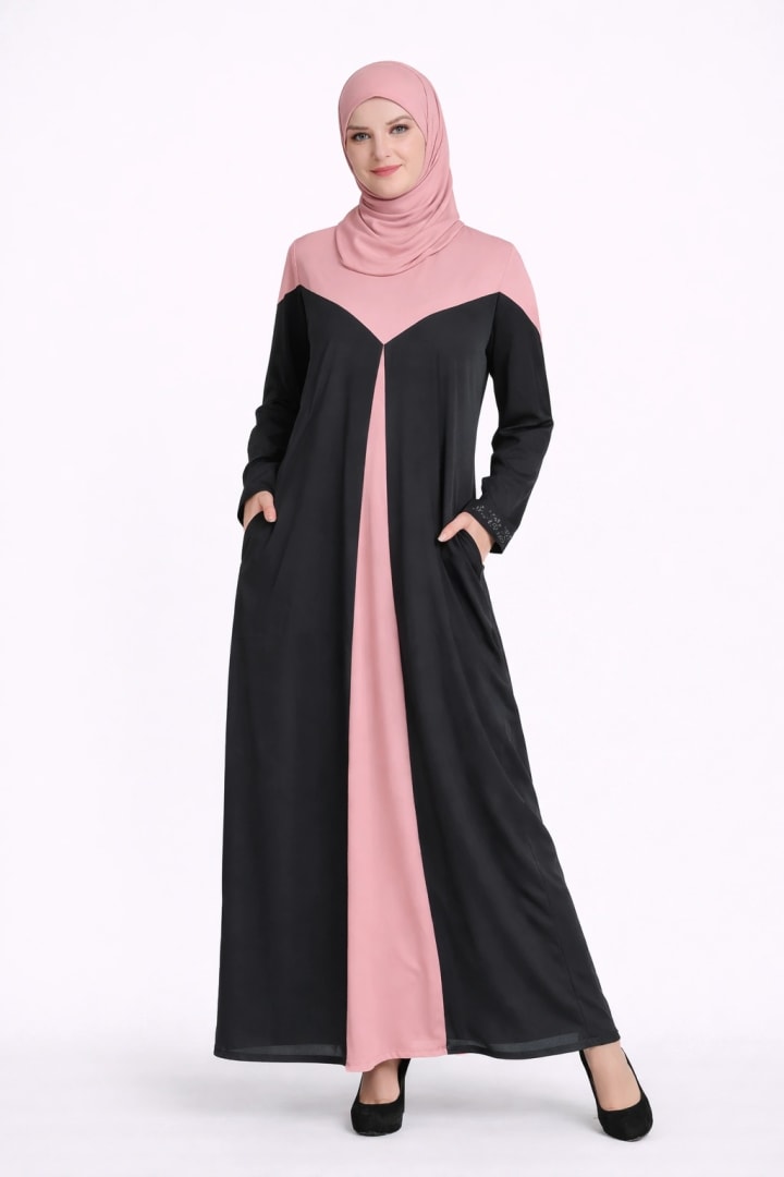 - Everyday wear: Plain abaya with breathable hijab