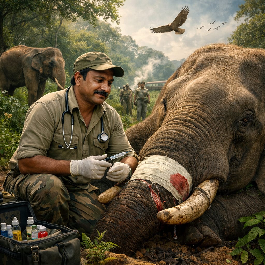 Elephants in India face a wide range of threats. Habitat loss due to deforestation and urban expansion has forced them into closer contact with humans, leading to conflicts that often result in injury or death. Additionally, illegal poaching for ivory, accidents involving trains, and electrocution from poorly managed power lines have become increasingly common. These challenges have made the role of wildlife veterinarians more critical than ever.