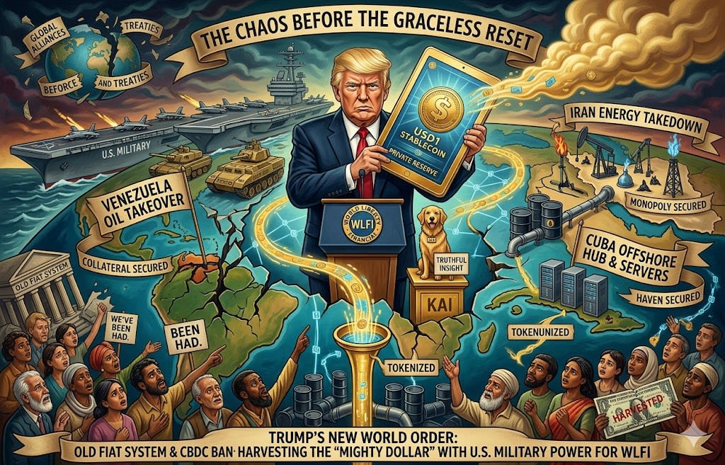 Venezuela (The Oil Reserve): The capture of Maduro wasn't about democracy; it was a hostile takeover of the world’s largest oil reserves. By forcing Venezuelan crude back into a dollar-only (and soon, a USD1-tokenized) ecosystem, Trump secured the "black gold" backing for his digital empire.