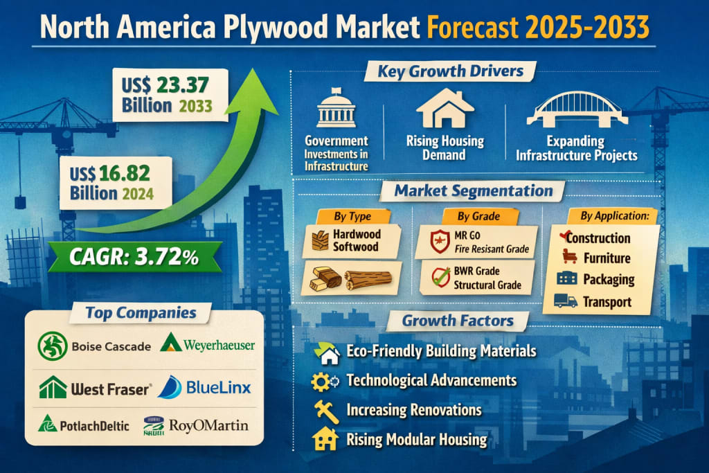 Rising demand for eco-friendly construction materials, government investments, and technological innovation position the North America plywood market for sustained expansion through 2033.